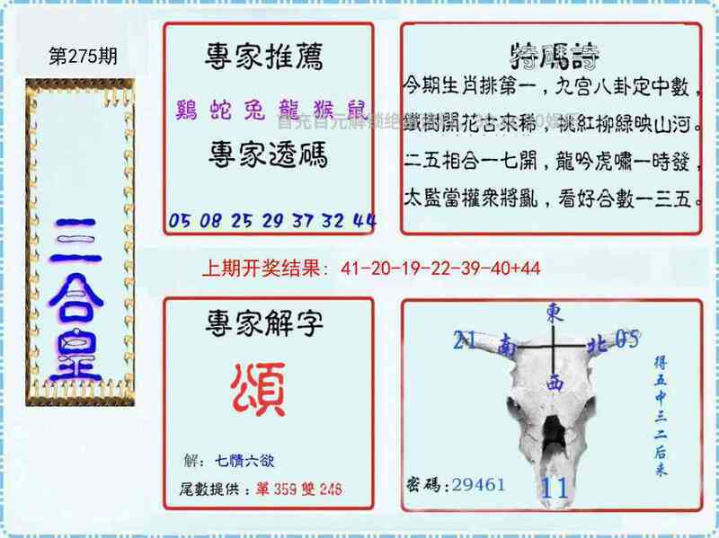 【解三合皇图】开:鸡45 275期特码诗:今期生肖排第一,九宫八卦定中數,鐵樹開花古來稀,桃紅柳綠映山河。二五相合一七開,龍吟虎嘯一時發,太監當權眾將亂,看好合數一三五。 【专家推荐】鸡蛇兔龙猴鼠 ![]() |